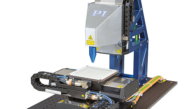 Similarly, these industrial micro-robots have been broadly implemented for assembly of smartphone cameras and similar mechanisms. In these applications, they provide six degrees of freedom of motion together with a freely settable rotational centerpoint that allows millidegree-scale rotation precisions about optically desirable points, such as beam waists, focal points, and waveguide end-faces. Similarly, the coordinate system is not fixed in space as it is with conventional stacked assemblies, and it can be cast and rotated to facilitate the application with simple software commands.
