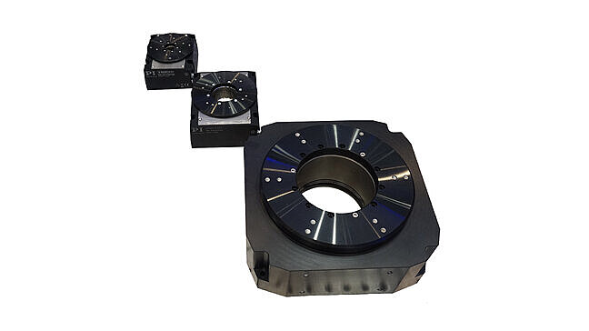 For this task of long-term positioning a high accuracy of motion was demanded: Z alignment 32 mm and crystal selection 155 mm with 1 μm resolution each, angular motion over ±5 degrees with a resolution of 20 μrad. Additionally, the whole system needs to be stable over long terms in a vacuum environment of 10-7 hPa.
