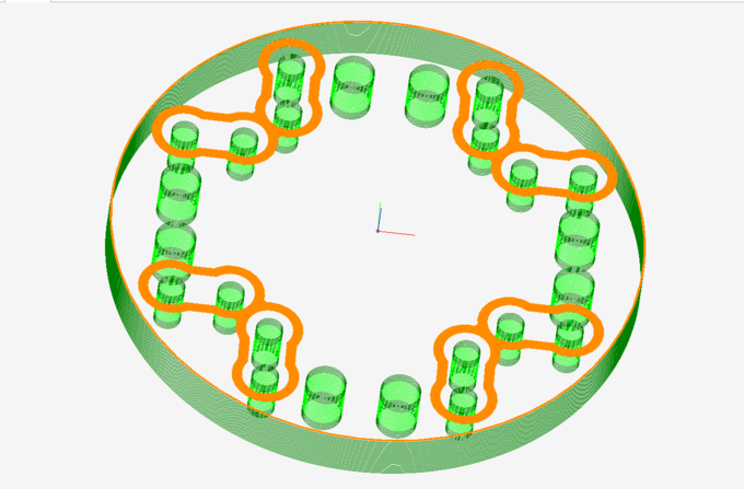 Motor current traces related to commanded moves: PILOT control (green) vs standard control (purple). The graph shows ten rapid moves, perfectly overlaid, with identical move times. With PILOT control, the error characteristics are improved and the motor current required is reduced by 25%.