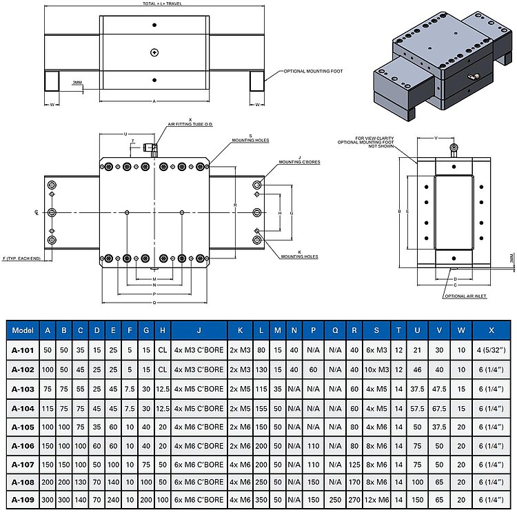 Straightness / flatness, per 25 mm travel range** | ±0.25 μm | ±0.25 μm | ±0.25 μm |