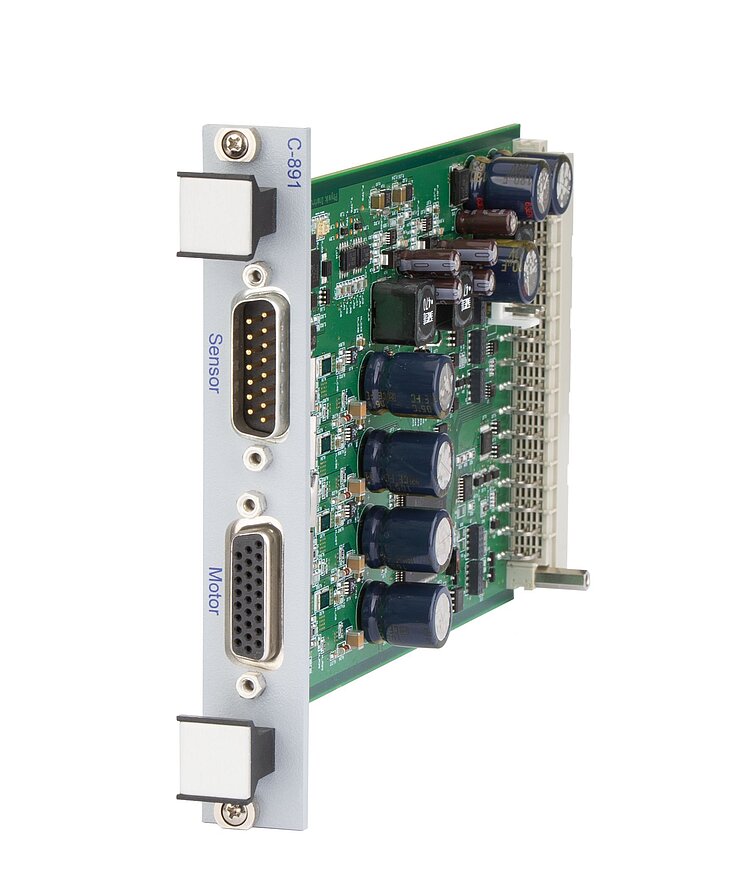 Can be inserted in any free slot. Automatic detection and external communication (USB, Ethernet) by the processor and interface module of the C-885. Can be expanded with optional digital inputs and outputs. Power via the power supply of the C-885.