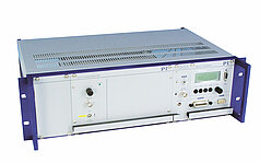 E-500 / E-501 Series Modular Piezo Controller: Chassis with power supply, amplifier modules (E-503, E-504, E-505, E-506, E-508), sensor and servo-control module (E-509), display and interface modules (E-515, E-517).