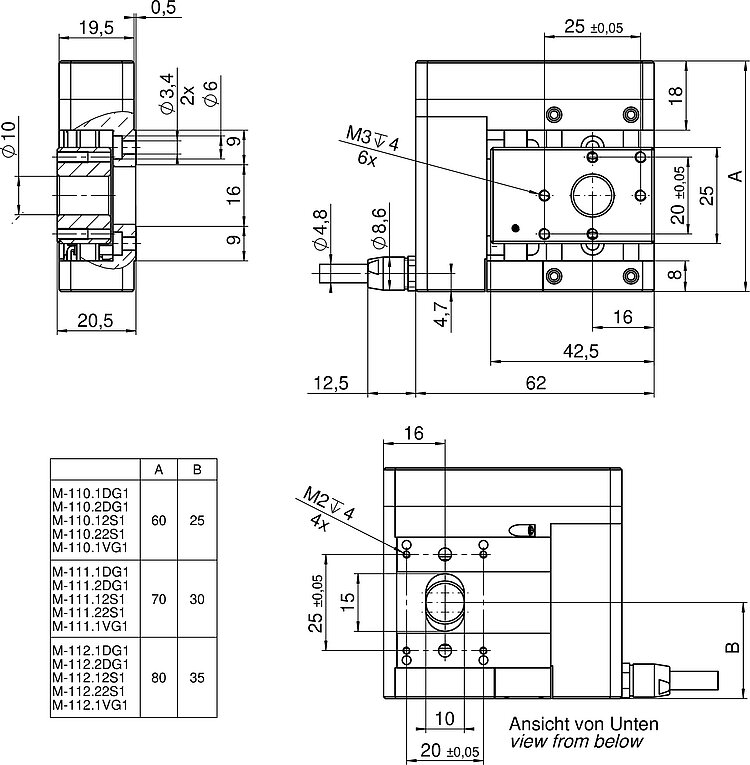 | Motion | M-110.1DG1 | M-110.2DG1 | M-110.12S1 | M-110.22S1 | M-111.1DG1 | M-111.2DG1 | M-111.12S1 | M-111.22S1 | M-112.1DG1 | M-112.2DG1 | M-112.12S1 | M-112.22S1 | Tolerance |