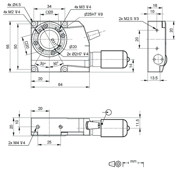 Worm drive. Aperture with 20 mm Ø. Reference switch.