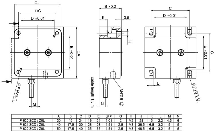 | Positioning | P-620.Z0L | P-620.ZCD | P-620.ZCL | P-621.Z0L | P-621.ZCD | P-621.ZCL | P-622.Z0L | P-622.ZCD | P-622.ZCL | Tolerance |