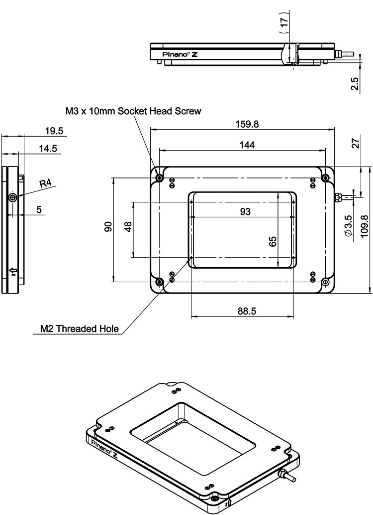 P-736.ZRxS PInano® piezo scanner (part of the P-736.ZRxS piezo scanner systems)