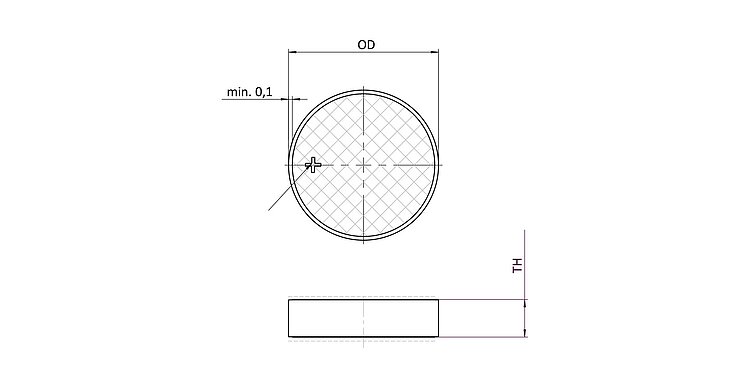 Piezoelectric disk, outside diameter (OD) = 25 mm × thickness (TH) = 0.2 mm, piezo material PIC181, electrode Ag screen printed