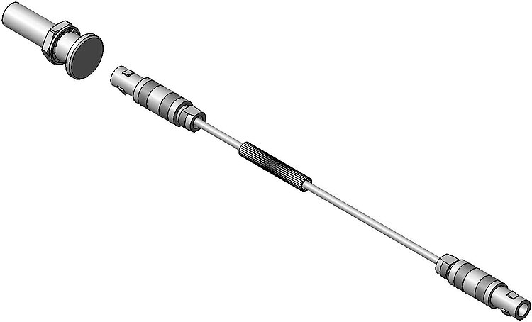 Vacuum feedthrough for DMS sensor signals, LEMO connector, 100 °C bakeout temperature, suitable for high vacuum (up to 10-6 hPa), including air-side cable, 2 m